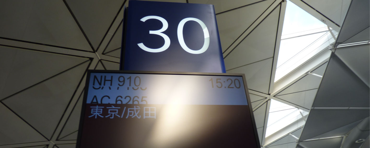 香港国際空港には、12時前には着いたものの、ちょうど日本行きの便がない時間帯だったため、一番早いが満席のANAの羽田行きをスタンバイ。1時間遅れの成田行きを確保した。
