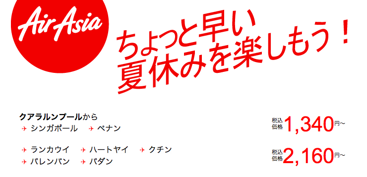 エアアジアはクアラルンプール発着の国内・国際線で2012年6月17日までセールを実施している。