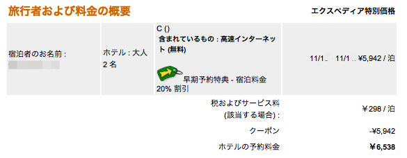 (クーポン条件メールによると、一人1回限りで、2回目以降はExpediaが差額を請求する可能性があるとのことでした。お詫びと訂正をさせていただきます。読者の方、ご指摘ありがとうございました。)