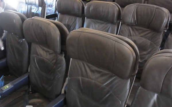 機材はA330-200。座席は黒がベース。配列は2-4-2の配列で往路のJQ 12便と同じ。パーソナルTVなどは無い。搭乗率は50%ぐらいだった。