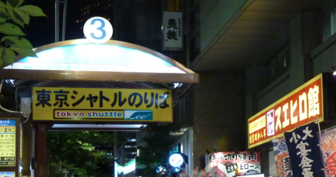 乗り場は、 東京駅の八重洲北口から横断歩道を渡って少し歩いた場所にある京成バスの3番のりば。雨の時には、八重洲地下街を通って行くとあまり濡れなさそう。近くにはファミリーマートがあります。