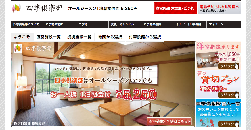 お盆や年末年始も、1泊朝食付き5,250円均一という宿泊施設「四季倶楽部」をご存知でしょうか。