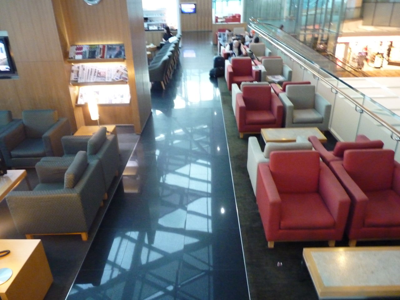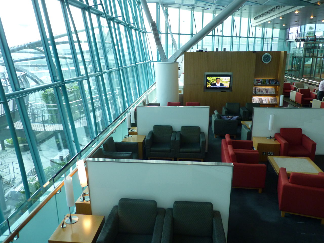 ラウンジ内は、テレビニュースが放映されていたり、英語や中国語の雑誌や新聞が置かれている。