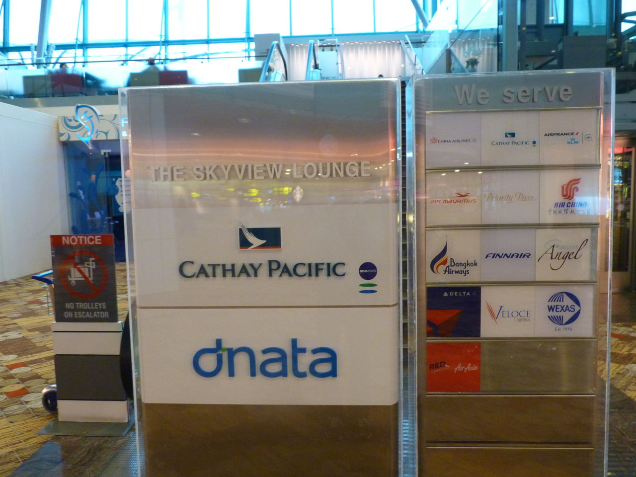 THE SKYVIEW LOUNGEが、キャセイパシフィック航空のラウンジという意味合いが強いようですが、他アライアンスのデルタ航空や中国国際航空、エアアジアなどでも利用が可能。PriorityPassも使用が可能。