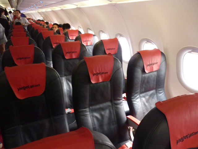 ベトジェットエアは新造機を導入しており、2011年12月に運航を開始したあと、すでに約1年が経っているにもかかわらず、機内は綺麗なまま。機内整備も行き届いている感じがします。