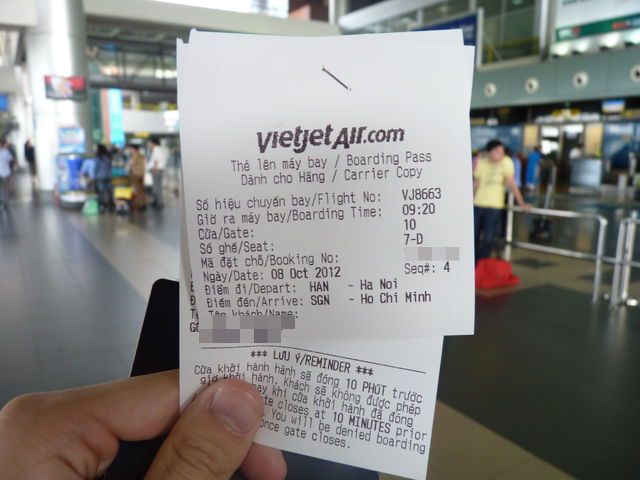 今回搭乗したのは、ベトジェットエア8663便(VJ8663便)。ハノイからホーチミンに向かう、国内線となる。