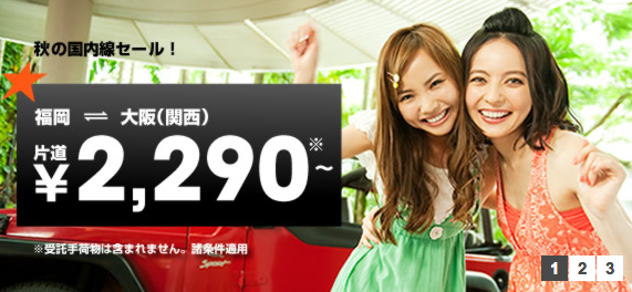 ジェットスターは、秋の国内線セールを、2012年10月28日まで開催している。完売次第終了ですので、お早めに。