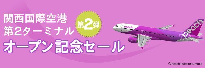 Peachは、同社が拠点としている関西国際空港に、LCC専用ターミナルとなる第2ターミナルがオープンすることを記念し、「関西国際空港第2ターミナルオープン記念セール」第二弾を、国内線で2012年10月26日11時、国際線で同日14時から開催する。