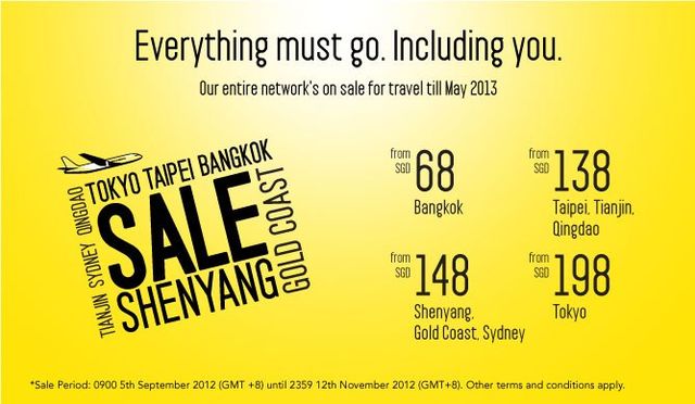 シンガポールのLCC、Scoot(スクート)は、シンガポール発着の各路線で、2012年11月12日までセールを開催している。