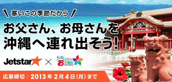 ジェットスターは、「お父さん、お母さんを沖縄へ連れ出そう!」キャンペーンを、沖縄県と共同で開催している。