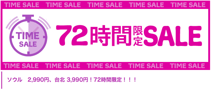 Peachは、2013年4月7日23時59分まで、ソウル・台北線で、72時間限定セールを開催している。