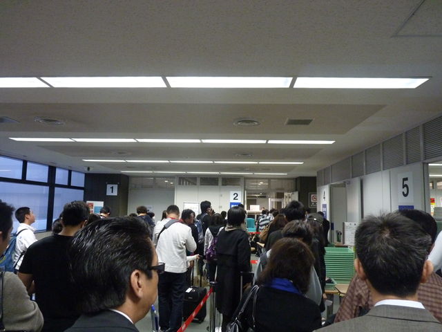 ウェブチェックインを行っていたので、チェックインカウンターはスルー。有人カウンターには荷物を預け入れる人がそこそこいました。