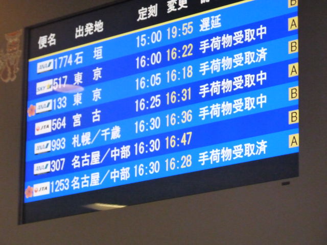少々遅れて出発しましたが、ほぼ定刻。ほとんどの人が、札幌か沖縄からの観光客と見られ、多くの荷物がターンテーブルに出てきていました。