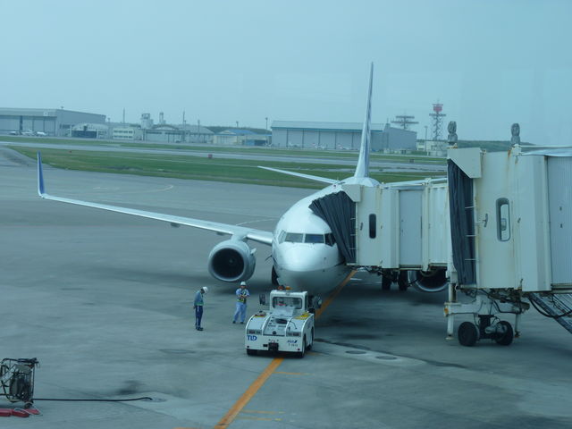 日曜ということで、那覇空港内は混雑しており、手荷物検査場は長蛇の列。土日を中心にお馴染みの光景なのですが、その影響もあり、特に短距離をピストン輸送する離島路線は、軒並み5〜10分程度の遅れになっていました。
