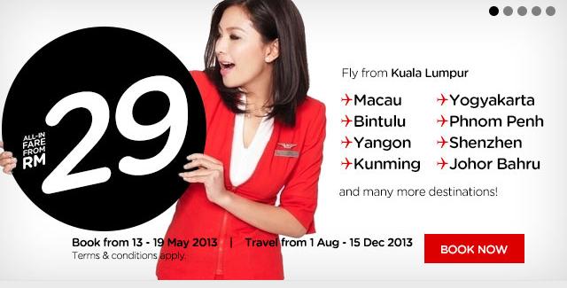 エアアジアは、クアラルンプールなど、東南アジア発着の国際線・国内線で、片道29MYRからのセールを開催している。