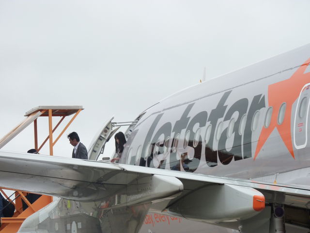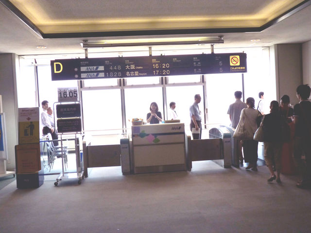 出発予定時間は、飛行機到着後に案内するとのことでしたが、すでにゲートの表示は次便の大阪行に。また、ジェットスターはJAL出資の会社ですが、ANA側のゲートを使っていました。