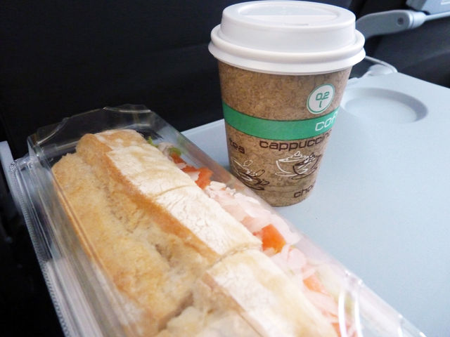 お替りは、客室乗務員に頼めばOK。何を希望するかはその都度聞かれますが、飛行時間から考えると2回が限界となる。