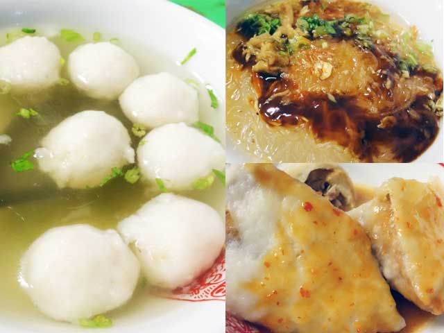 魚丸湯(左)、乾冬粉(右上)、 豆干包(右下)などを注文。1品30台湾ドル(約90円)程度と安くて美味。お昼の時間帯ということもあって、店内はたくさんの人で賑わっていた。