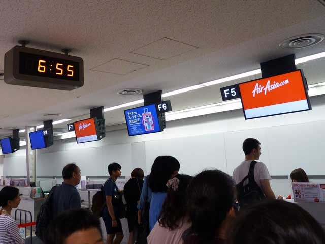 筆者は、ヒルトン成田に前泊し、午前6時半のバスで空港へ。ホテル〜空港間は、「大体20分」とのことでしたが、実際は10分ちょっとだったため、エアアジア台北行きのチェックイン締切り時刻の午前6時50分の5分くらい前に到着。