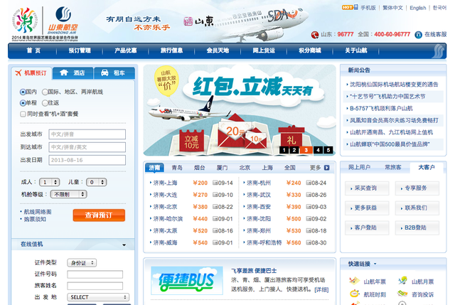 山東航空は、大阪/関西〜済南線に2013年9月より週1便運航予定でしたが、キャンセルしたことがわかった。■ダイヤSC4094 大阪/関西(12:35)〜済南(14:25)/火
