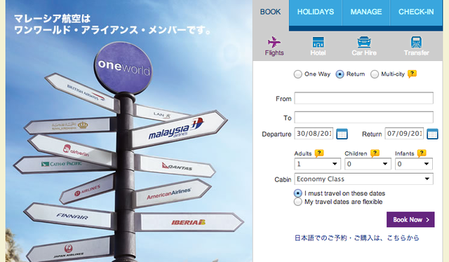 MH89 東京/成田(10:30)〜クアラルンプール(17:05)/毎日