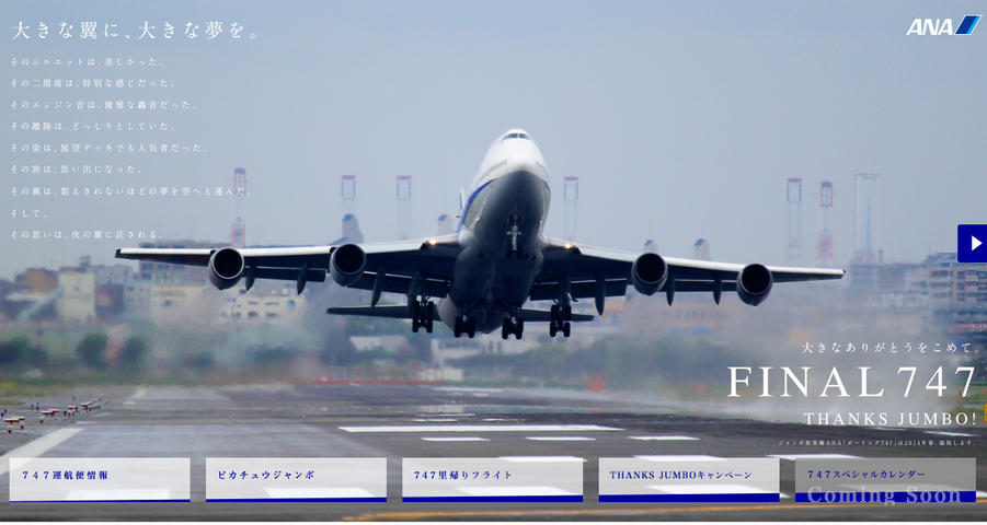 ANAは、2013年9月2日午後5時に、ボーイング747型機特設サイトをオープンした。