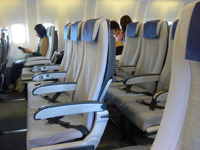 座席は新型の軽量化されたものでした。座り心地は可もなく不可もなくという感じですが、薄さの割にはしっかりしていると思う。