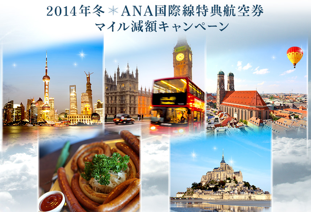 ANAは、2014年2月28日まで、国際線特典航空券のマイル減額キャンペーンを開催している。