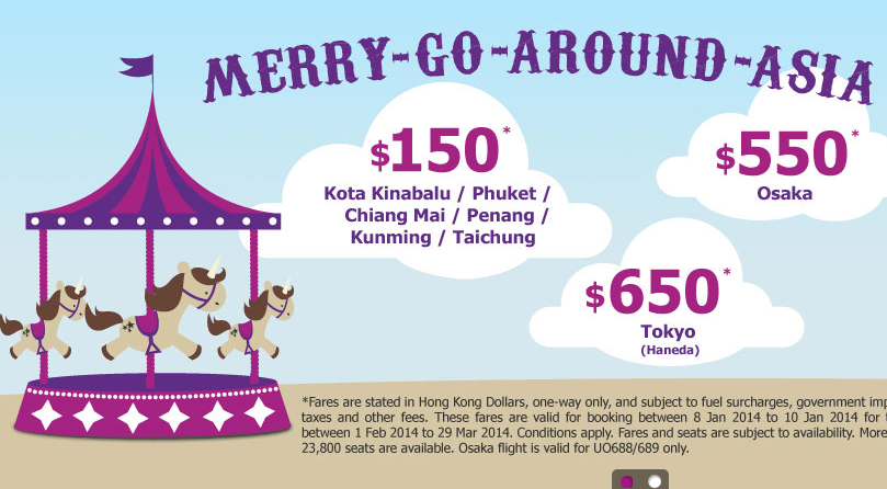 香港エクスプレス航空は、2014年1月10日まで、香港発着の全路線でセールを開催している。