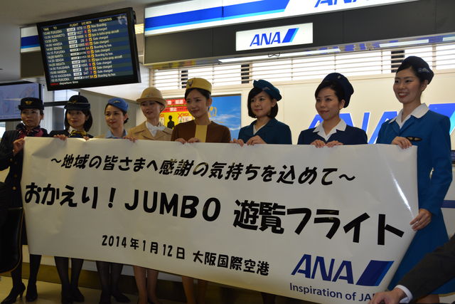 ANAは、2014年1月12日に伊丹空港で開催している、ボーイング747型機退役イベントで、地元住民を対象とした遊覧フライトを実施した。