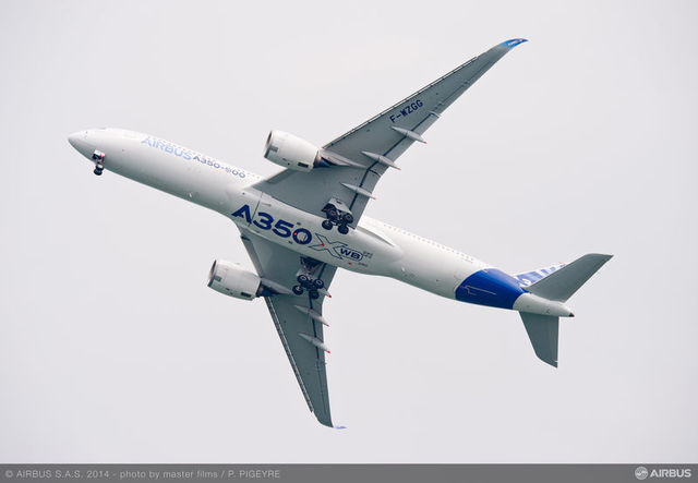 エアバスは、シンガポールエアショーで、開発中のエアバスA350XWB型機を披露した。