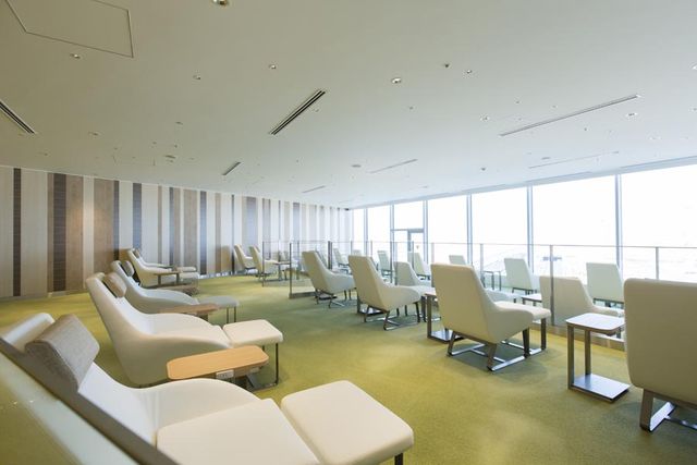本館に開設する「サクララウンジ」は、ターミナルビル中央部分に展開。エントランスのある4階には、食事を楽しめるダイニングを、5階には滑走路や都心の景色を眺めながら楽しめるエリアと、ビジネスコーナー、マッサージチェアなどを用意した。