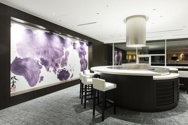 書道家の武田双雲氏が、「さくら色」と命名したオリジナルの墨で描いた、縦230センチ、横450センチの世界地図をバーカウンターに配置した。さらにシャワー室を増設したほか、更衣室や授乳室も新設している。