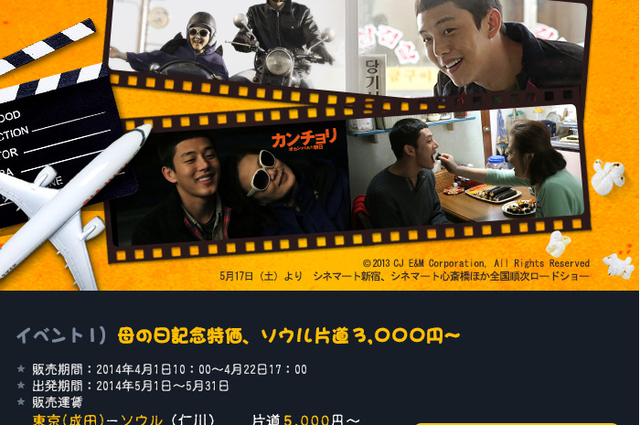 チェジュ航空(済州航空)は、2014年4月22日午後5時まで、映画「カンチョリ」とコラボしたキャンペーンを開催している。