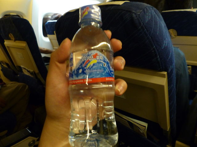 国際線ですが、機内食やスナックの提供はなく、サービスはこのペットボトルの水のみ。それでも急がないと配り終わりません。