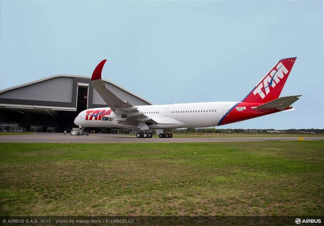 エアバスは、9月16日、TAM航空が12月に受領を予定しているA350XWB初号機が塗装を終えて工場からロールアウトしたと発表した。