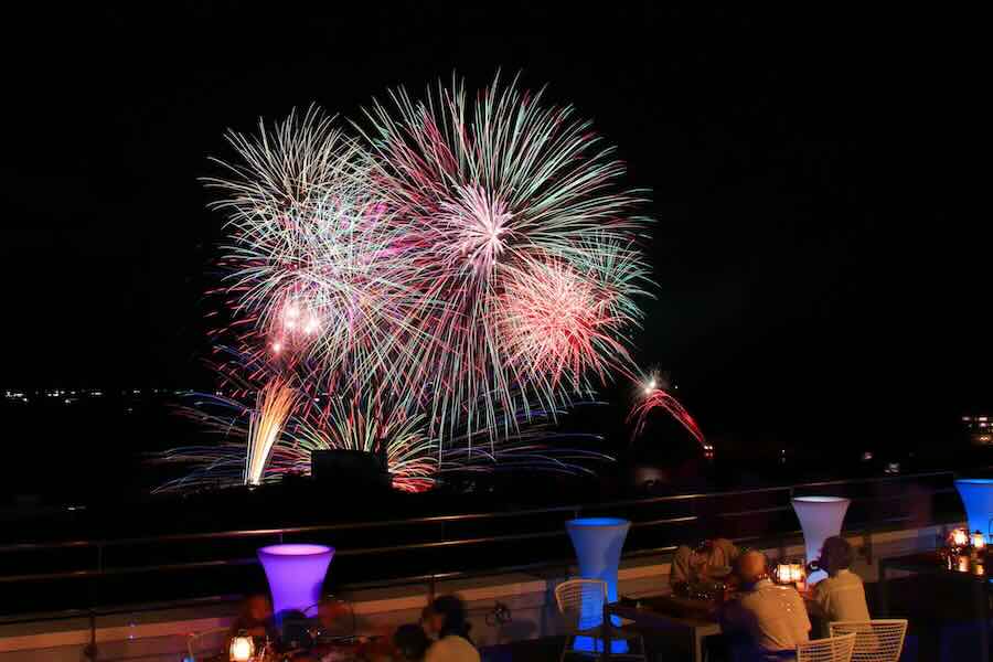 3回目の開催となる今年は、イベント限定のカクテル「パッションサンセット」「ココナッツビーチ」をはじめとしたドリンクや和歌山県産の紀州南高梅と旬のトロピカルフルーツのハーモニーを味わう特別ディナー「HANABI Terrace Dinner 」を楽しみながら、テラスの特等席で夜空に打ち上がる花火を鑑賞することができる。