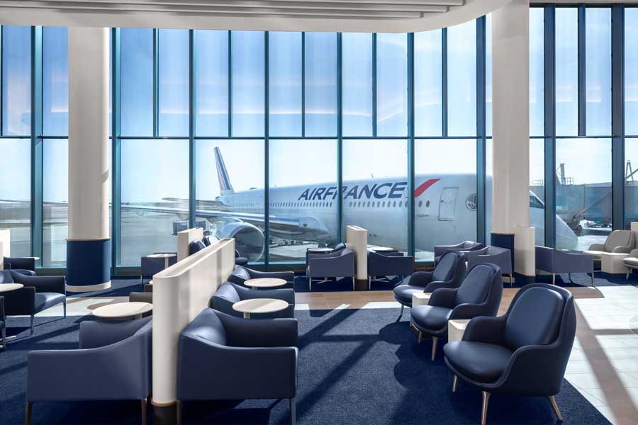 エールフランス航空のブランドイメージとサービス基準を反映し、グローバルラウンジネットワークと提携して運営する。広さは約470平方メートル、座席数は105席。