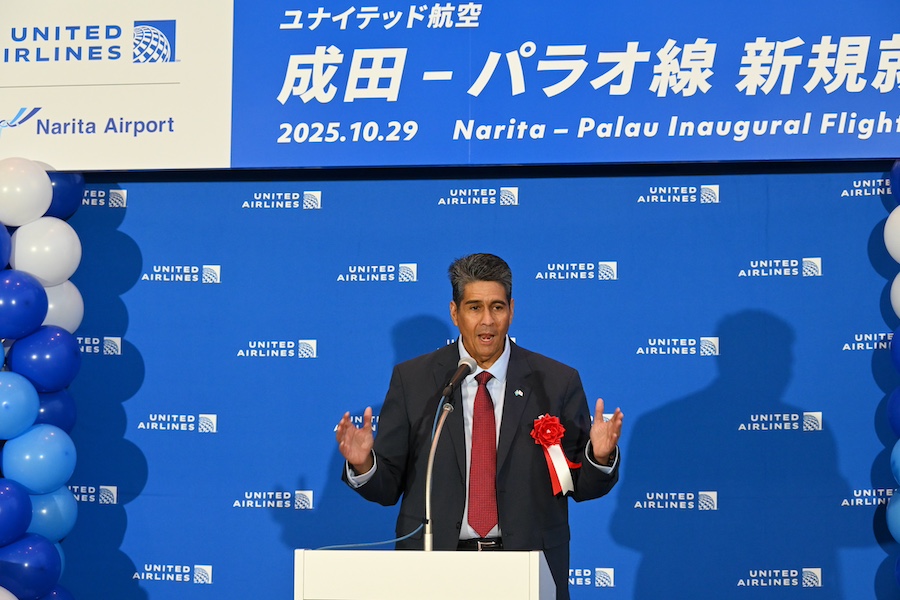 成田空港では記念式典が開かれ、ユナイテッド航空のスティーブン・モリッシー国際規制・政策担当副社長が「パラオは特別な場所。日本とアメリカのお客様にとって、太平洋で最も美しい島々への新たな玄関口になる」と挨拶した。