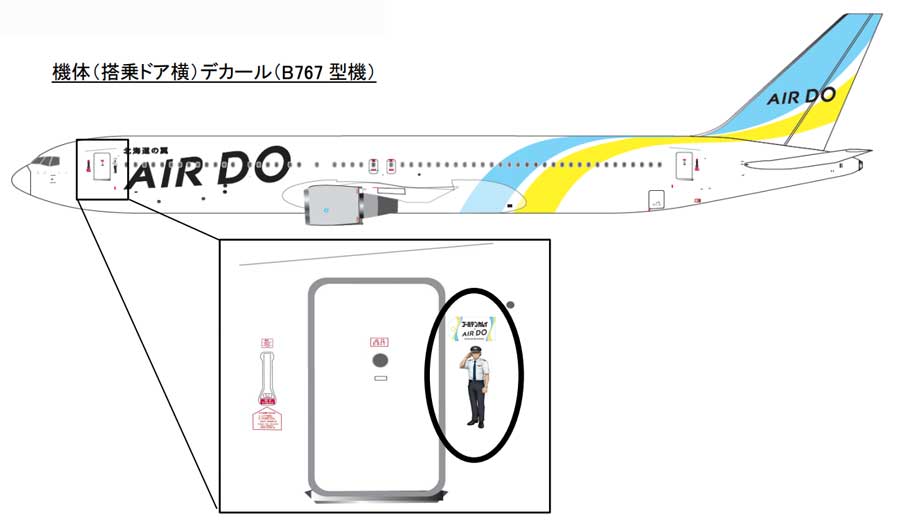 機体のドア横には、オリジナルロゴとキャラクター1体のデカールを貼付する。ロコンジェット北海道を除く全11機が対象となる。