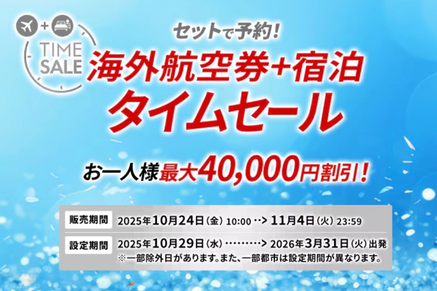 ジャルパックは、「JAL海外ダイナミックパッケージ 期間限定タイムセール」を10月24日午前10時から11月4日まで開催している。