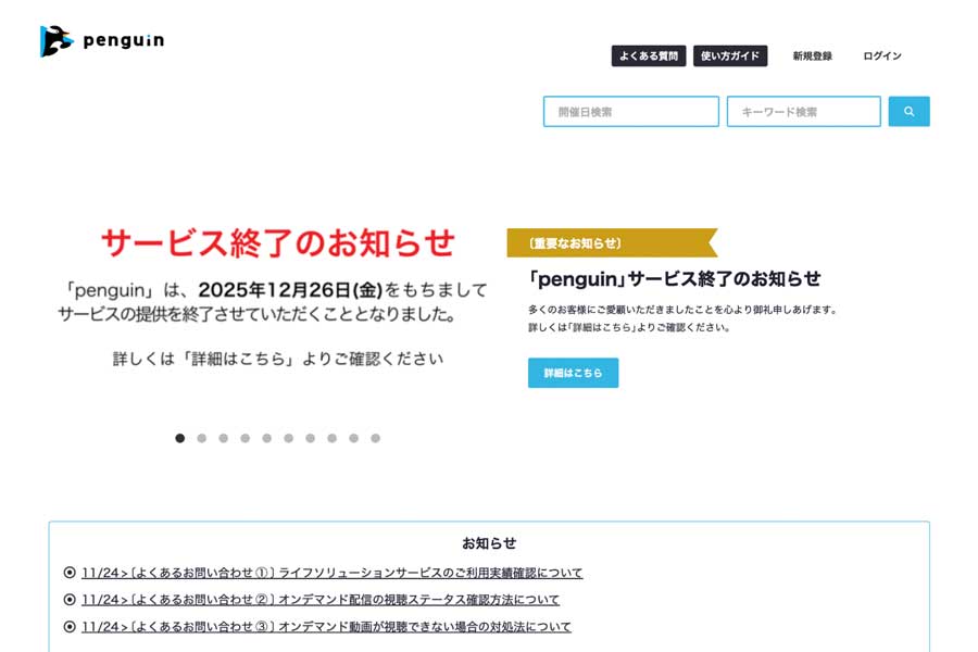 ANA Xは、動画配信サービス「penguin」のサービスを、12月26日をもって終了する。