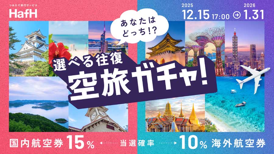 KabuK Styleは、旅行サブスクリプションサービス「HafH(ハフ)」は、累計宿泊数80万泊突破を記念したキャンペーンを12月15日午後5時から2026年1月31日まで開催する。