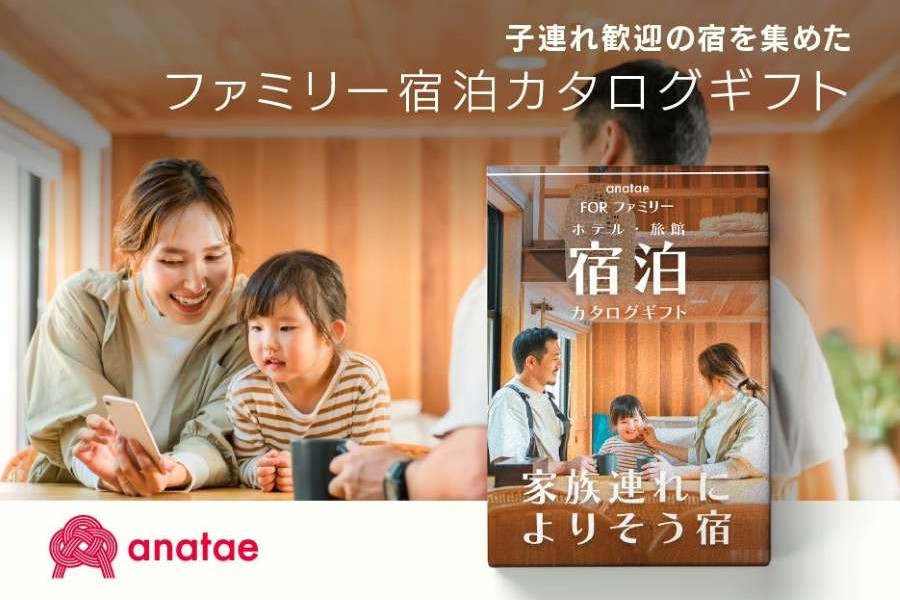 ANATAEは、体験ギフト・マーケットプレイス「anatae」で「【家族連れにやさしい】ファミリー宿泊カタログギフト」の販売を開始し、既存ペア宿泊カタログ全商品に、予約時に子ども追加オプションを選べる機能を実装する。