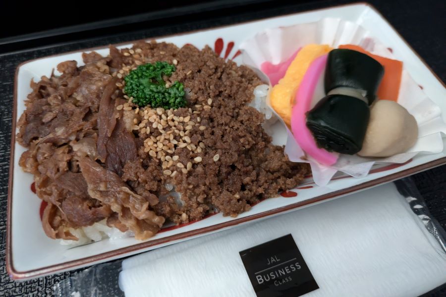 アラカルトのメニュー(一例としては、期間限定で提供された人気駅弁「牛肉どまん中」を機内食にアレンジしたメニューなど)など、楽しめる要素は多々あると思う。とはいえ、個室感たっぷりのビジネスクラスは完成度は高い。