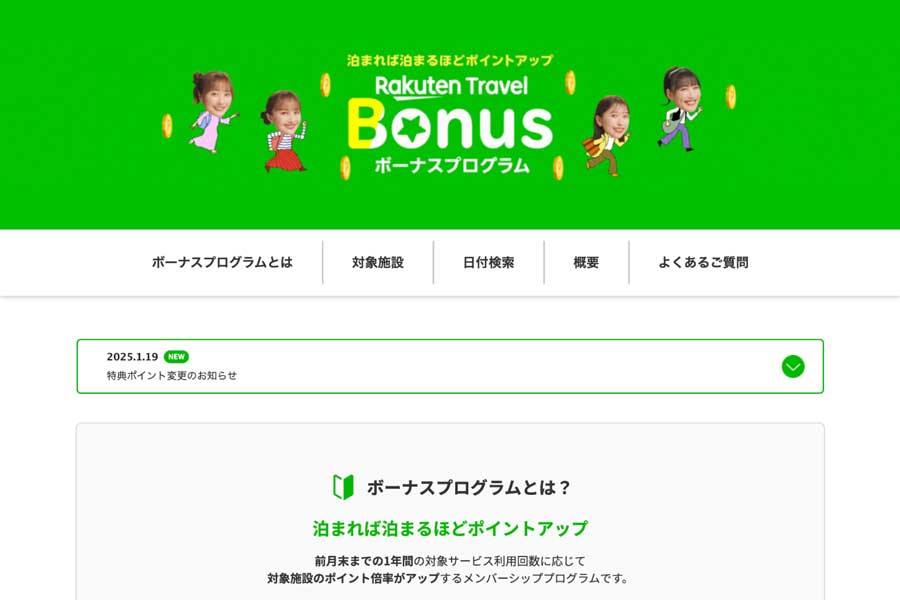 楽天グループは、旅行予約サイト「楽天トラベル」で「楽天トラベルボーナスプログラム」を1月から変更した。