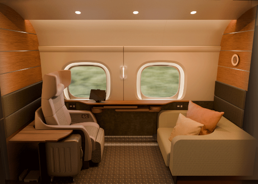 半個室タイプの座席はグリーン車の10号車に6席を導入する。通路と座席間には鍵付きの扉を設けるほか、レッグレスト付きの大型バックシェルタイプの座席を採用する。専用のWi-Fi環境や荷物スペースも整備する。