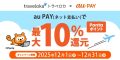 トラベロカ、au PAY利用で最大10%ポイント還元キャンペーン 12月31日まで